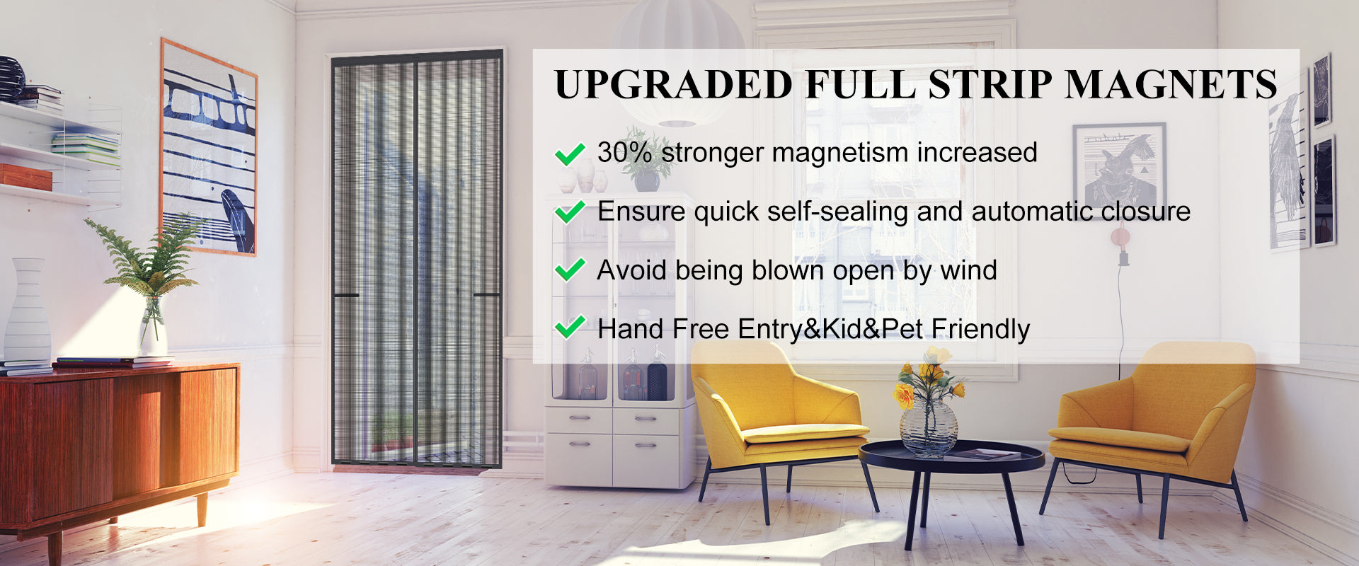 Mpmedo Magnetic Screen Door Upgraded-Model Full Strip Magnets,Heavy Duty Mesh,Retractable Door Screen Magnetic Closure for Single Front Sliding Door