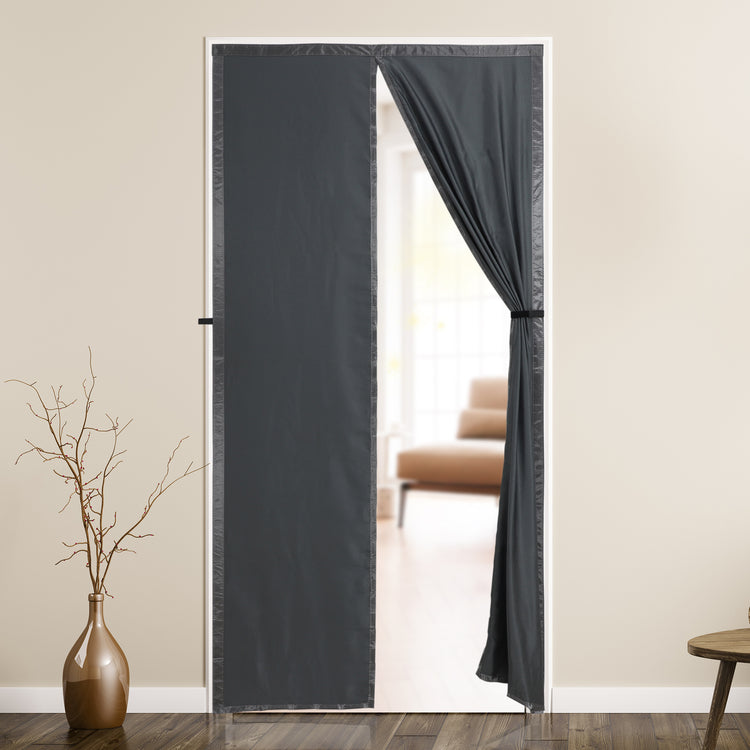 Mpmedo Magnetic Thermal Insulated Door Curtain,Thicker Layered Fabric Doorway Curtains,Temporary Door Insulation Cover Keep Warm Winter&Cool Summer,Dark Grey Fabric Door Window Insulation Kit for Winter